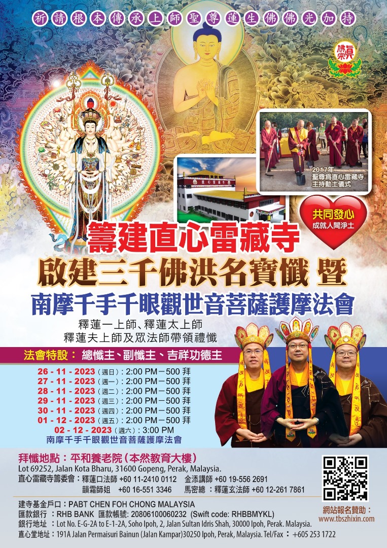 阿彌陀佛!如您有任何關於籌建雷藏寺或者法會報名的問題,歡迎隨時與我們取得聯繫。